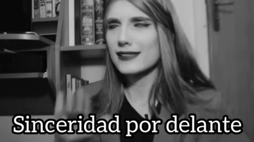 Dannaalquati in a black and white video, with the Spanish caption 'Sinceridad por delante' (Sincerity first).