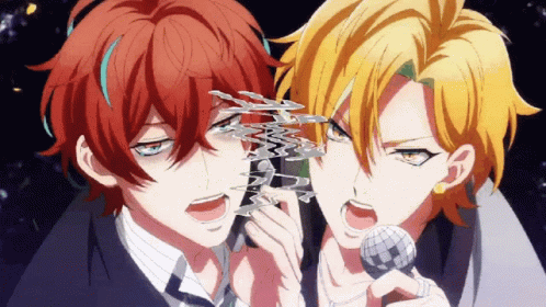 Anime characters Doppo Kanonzaka, Hifumi Izanami, and Jakurai Jinguuji sing from Hypnosis Mic: Rhyme Anima.