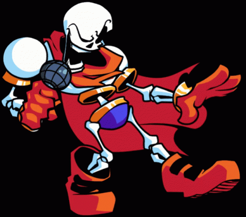 Papyrus, the skeleton from Undertale, sings and raps in Friday Night Funkin' while holding a microphone.