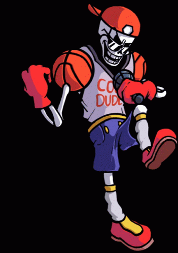 Papyrus from Undertale, in his 'Cool Dude' outfit, rapping with a microphone in Friday Night Funkin'.