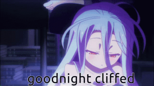 Shiro from No Game No Life looks sleepy with the caption "goodnight cliffed".