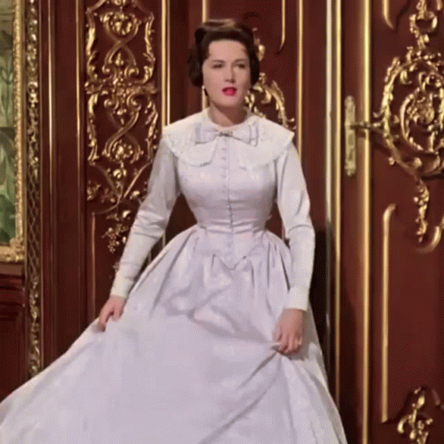 Empress Sisi from the Sissi movie series makes a grand entrance in a white period gown.