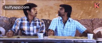 Siva Karthikeyan and a friend share a laugh while sitting at a table, engaged in a lively conversation.