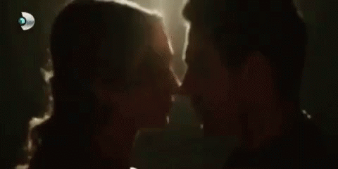 A couple from Siyahbeyazask shares a romantic moment, kissing and dancing within a circle of fire.