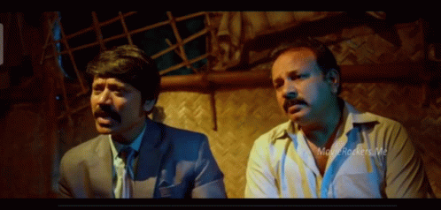 Sj Surya and another man in an intense, dimly lit scene, likely from the movie Nenjam Marappadhillai.