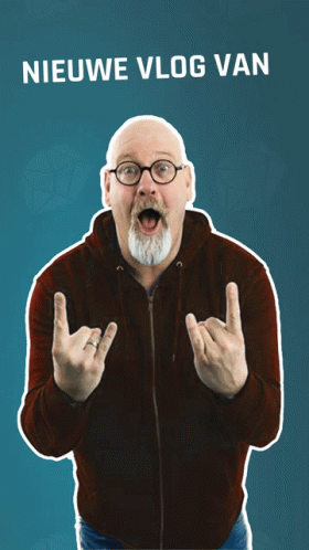 Concierge Sjoerd, also known as Sjoerd Van Helmond, announces his new vlog is now online, making a rock sign with an excited expression.