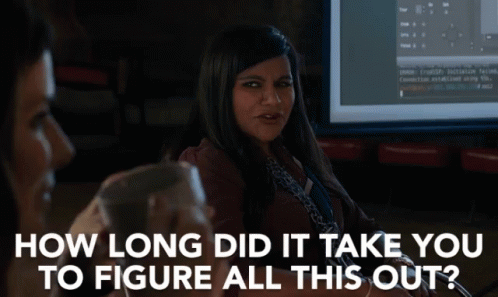Mindy Kaling asks 'How long did it take you to figure all this out?' with a skeptical expression.
