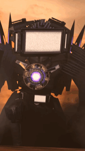 The powerful Skibidi Toilet Titan Tvman, a dark robotic figure with a screen head and glowing core, appears.