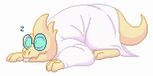 Alphys from Undertale, a pixel art lizard character, is shown sleeping soundly with 'Zzz' bubbles.