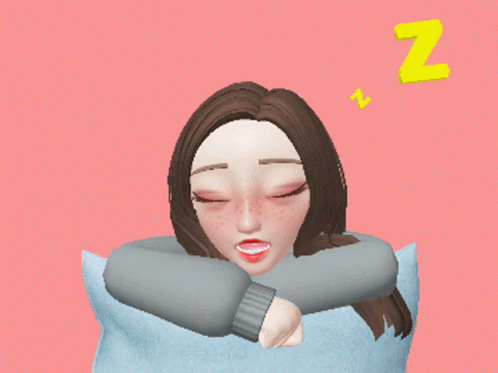 An animated girl avatar sleeps soundly on a pillow, with "Zzz" symbols indicating deep sleep.