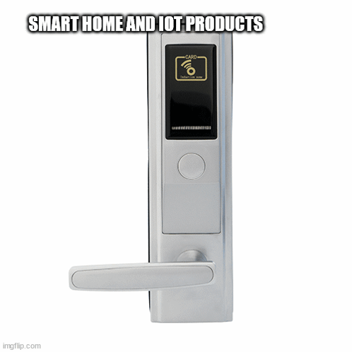 A smart home IoT door lock with a sleek silver design and an integrated card reader for secure access.