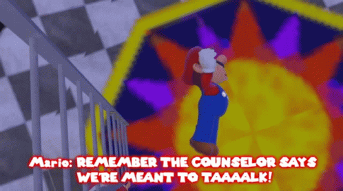 SMG4 Mario reminds everyone, "REMEMBER THE COUNSELOR SAYS WE'RE MEANT TO TAAAALK!"