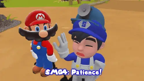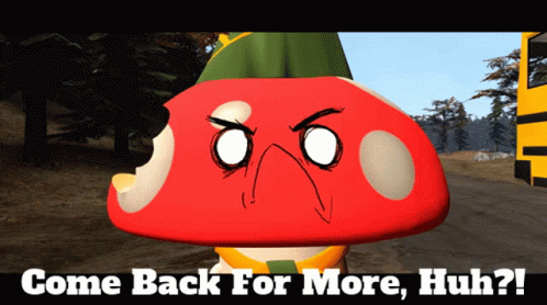 Smg4's Shroomy character with an angry expression, asking 'Come Back For More, Huh?!'