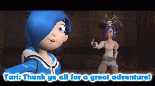 Smg4 Tari, dressed as a pirate, gives a thumbs up and thanks everyone for a great adventure.