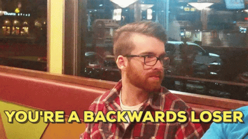 A man with glasses and a beard makes a 'loser' sign with his hand, accompanied by the caption "YOU'RE A BACKWARDS LOSER".