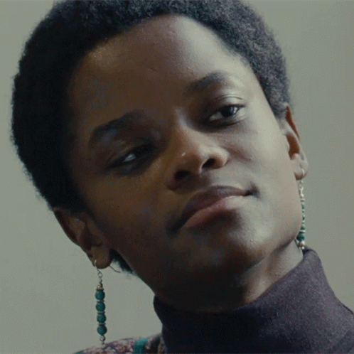 Altheia Jones (Letitia Wright) smiles happily, showing her teeth, wearing beaded earrings.
