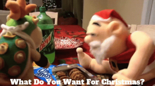 SML and ATSO puppets sit at a table with Santa, asking 'What Do You Want For Christmas?'