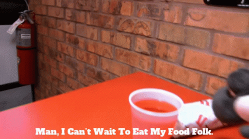 Black Yoshi eagerly awaits his food, exclaiming 'Man, I Can't Wait To Eat My Food Folk!' at a red table.
