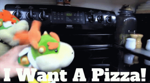 Bowser Junior from SML demands pizza, with the text 'I Want A Pizza!' displayed.