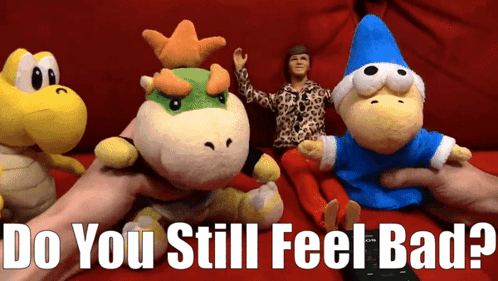 SML's Bowser Junior, Koopa Troopa, and Kamek puppets on a red couch with 'Do You Still Feel Bad?' text.