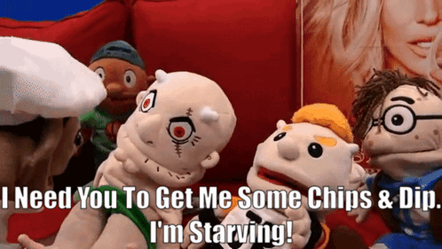 Braxton, a puppet from SML, demands chips and dip because he's starving.