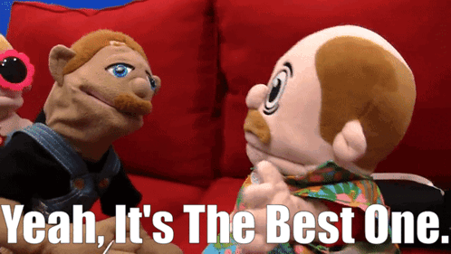 Sml Brooklyn Guy and another puppet on a red couch, agreeing 'Yeah, It's The Best One.'