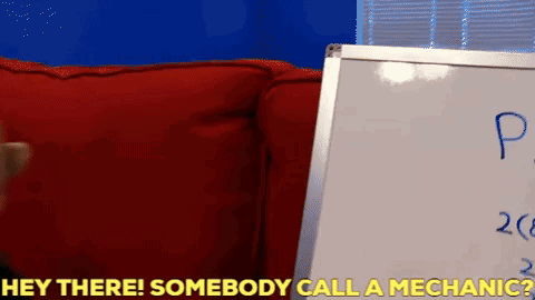 SML's Brooklyn Guy asks if someone called a mechanic, sitting on a couch next to another puppet.
