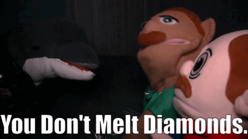 SML Brooklyn Guy and another puppet discuss diamonds, with the caption 'You Don't Melt Diamonds.'
