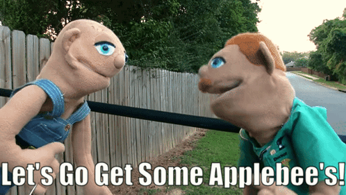 SML's Brooklyn Guy and another puppet discuss going to Applebee's, with the text "Let's Go Get Some Applebee's!"