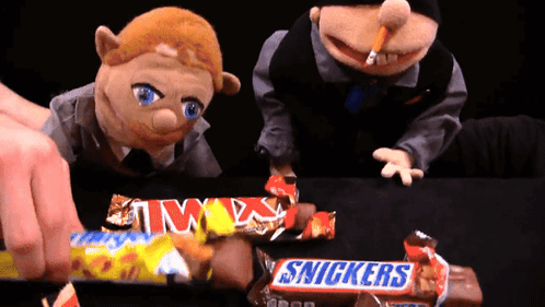 SML's Jeffy and Brooklyn Guy interact with a Butterfinger candy bar.