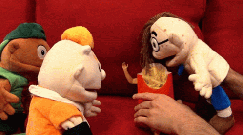 SML Cody and friends on a red couch, with Cody eating McDonald's French fries.