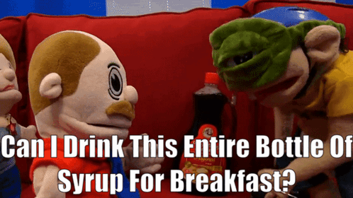 SML's Jeffy asks if he can drink an entire bottle of syrup for breakfast, sparking a funny debate.