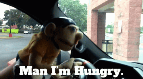 Jeffy from SML (SuperMarioLogan) drives a car, expressing his hunger with the on-screen text "Man I'm Hungry."