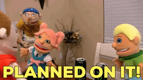 Jeffy from SML reacts with 'Planned On It!' while surrounded by other puppets and Monster energy drinks.