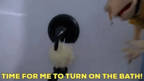 Jeffy from SML is in the bathtub, ready to turn on the water for his bath time.