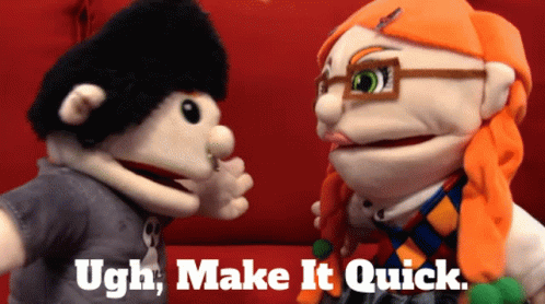 Sml Junior and another puppet are talking, with Sml Junior expressing impatience with the caption 'Ugh, Make It Quick.'