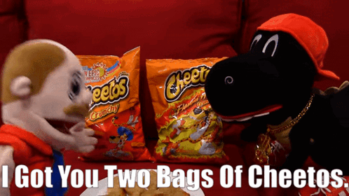SML Marvin from SuperMarioLogan receives two bags of Cheetos, one crunchy and one Flamin' Hot.