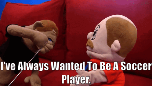 SML's Brooklyn Guy shares his dream of becoming a soccer player with Jeffy while sitting on a red couch.