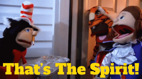 SML Tyrone puppet, a tiger, and another character with the caption 'That's The Spirit!' from SuperMarioLogan.