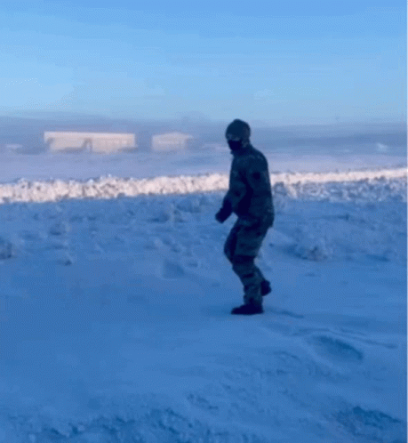 A person walks across a vast snowy field, then slips and falls onto the icy ground in an unexpected moment.