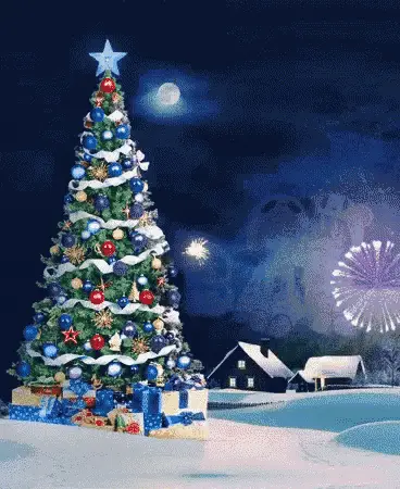 Festive animated greeting for 2020 featuring a cute mouse in a winter hat and scarf, surrounded by snowflakes and holiday decorations.