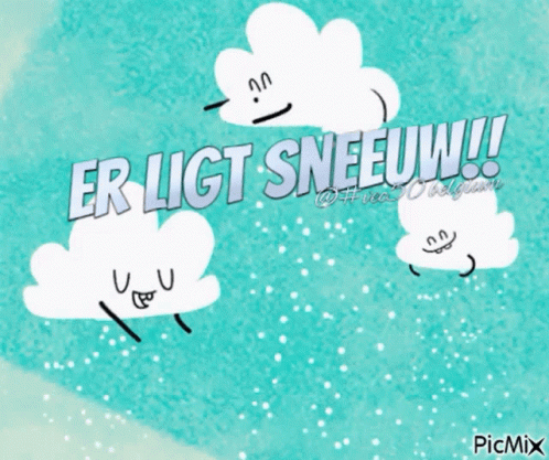 Cute cartoon clouds with faces react to the exciting news: 'It's snowing!'