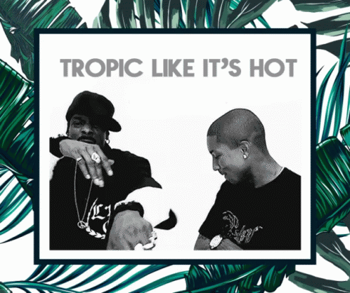 Snoop Dogg and Pharrell Williams featured in a stylized black and white image with the text 'Tropic Like It's Hot'.