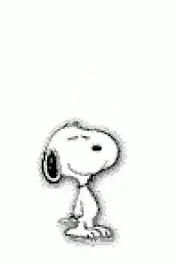 Snoopy, the beloved cartoon beagle, performs his iconic happy dance with eyes closed on a vibrant red background.
