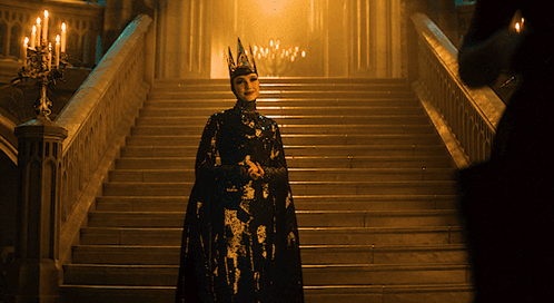 Gal Gadot as the Evil Queen in the upcoming live-action 'Snow White' movie, standing majestically on a grand staircase.