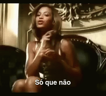 Beyonce appears in a music video with the Portuguese caption 'Só que não' (Just kidding) on screen.