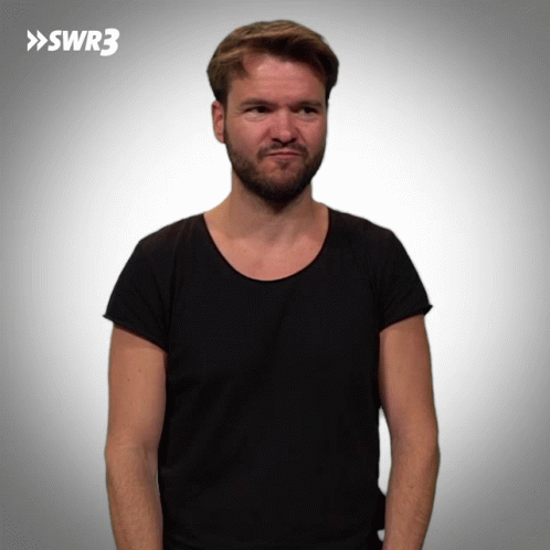 Basti from SWR3 makes a disgusted face and 'stop' gesture, expressing a 'So Sol' reaction.