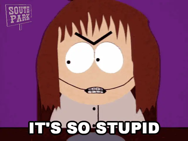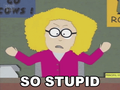 Principal Victoria from South Park reacts with exasperation, with the text 'SO STUPID' displayed.
