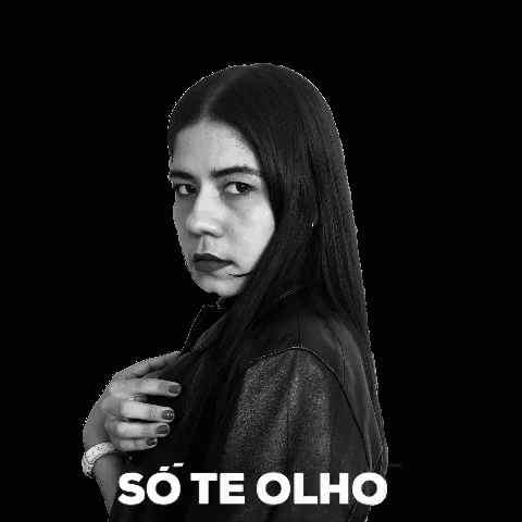 Nataliadutra in a striking black and white portrait, giving an intense look with the text 'Só Te Olho'.
