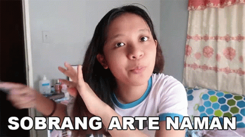 Aliana Villarosa reacting with the phrase 'Sobrang Arte Naman' (So dramatic) on screen, touching her hair.